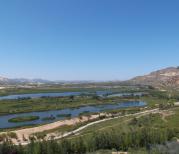 来赤峰的第一个景点就是玉龙沙湖,从市区大巴行一个半小时左右,经过后面几天行程才知道这是最近的景点了。因此地出土中国第一龙文物,故称玉龙。草原中的沙漠,尚有点绿色,蓝天下还有一片纯净的湖泊,风景不错。太阳下很晒,可只要往沙堆中任一棵树下一躲,