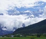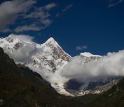 南迦巴瓦峰其巨大的三角形峰体终年积雪,云雾缭绕,从不轻易露出真面目,所以它也被称为"羞女峰"。南迦巴瓦在藏浯中有多种解释,一为"雷电如火燃烧",一为"直刺天空的长矛',还有一为"天山掉下来的石头"。