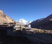 从绒布寺内向南,是观赏珠峰的最佳位置,尤其是寺门口的玛尼堆和白塔,常被游客作为拍摄珠峰的前景。