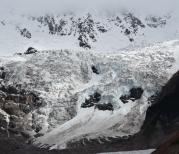 米堆冰川非常壮观,从318国道下来,在走一个小时就能到达米堆村,那里有个停车场。再下来走一段路,就能到达米堆冰川面前。冰川散发着幽兰的光,巨大的冰舌前形成一个冰湖