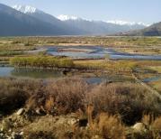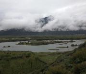 尼洋曲,林芝的母亲河,也是雅鲁藏布江的七大支流之一。尼洋曲的美,美在湿地,美在麻花辫一样的股股溪流,美在河滩上的依依蒲柳,美在溪流之间的金色沙丘。虽然未能置身其中,远远望着就很陶醉。尼洋曲河自北向南近乎垂直流入雅鲁藏布江,江河会流处蔚为壮观