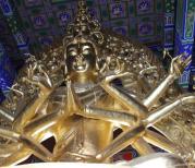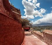 参观完白宫之后的部分就是红宫了,这里外面红色的材质已经因为一部人为破坏(赛钱扣东西)而进行了一定的修缮,与白宫行政职能不同,这里更多的承担的是宗教的功能。因为相对来说建筑的外部规模看上去没有白宫大。这里的主区域供奉着包括莲花大师在内的很多精
