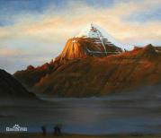 纳木那尼峰,海拔7694米,位于喜马拉雅山西段,与海拔6638米的神山冈仁波齐遥遥相对,藏民称之为“圣母之山”或“神女峰”。西面的山脊呈扇状由北向南排列,东面唯一的山脊被侵蚀成刃脊,十分陡峭,形成了高差近2000米的峭壁。相比而言,西面的坡