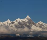 登色季拉山,豪情万丈。赏雪域风光,白色逶迤皑皑。山顶风声狮吼,经幡猎艳妖娆。山下风和日丽,祥雲瑞悬高罩。冬阳如毯,披覆大地金光。