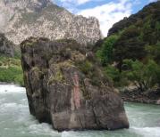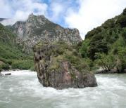 尼洋河中流砥柱是尼洋河上的一处景点,从拉萨过来翻过米拉山口一路顺尼洋河而下就会看见尼洋河中矗立的一块巨石景色十分壮观,旅游团经常在这里停留,让游客感受高原河流的魅力。