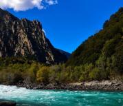 尼洋河中流砥柱像一个柱子一样阻挡住河水,这里河水非常漂亮,尤其是水清的时候,宛若一枚玉钮。