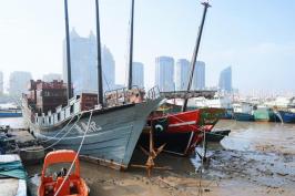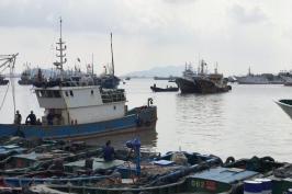 下午4点钟开始出发去沈家门。一路都有标记,到达滨港路停好车后,时间约为5点了,逛逛滨港路,看看海边的到港渔船。。。。