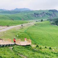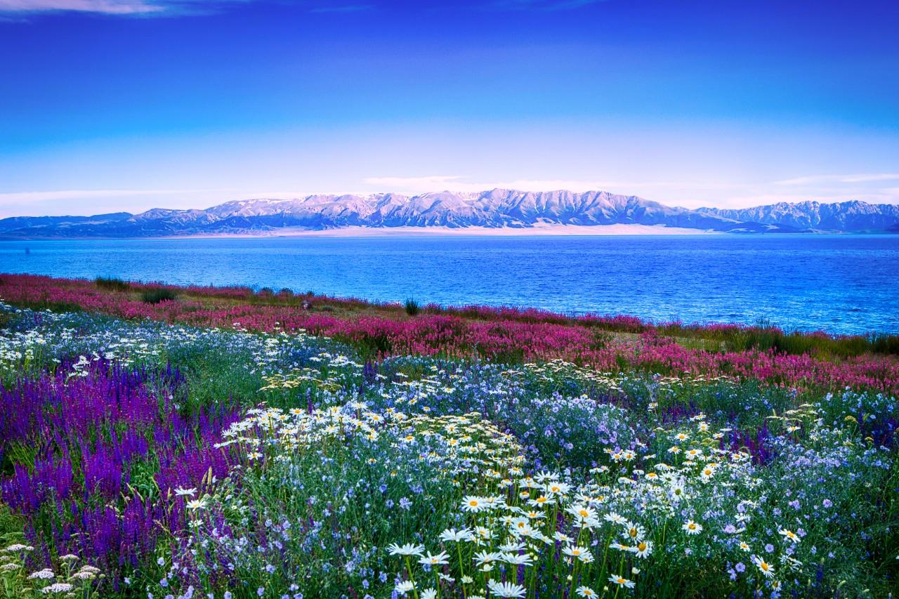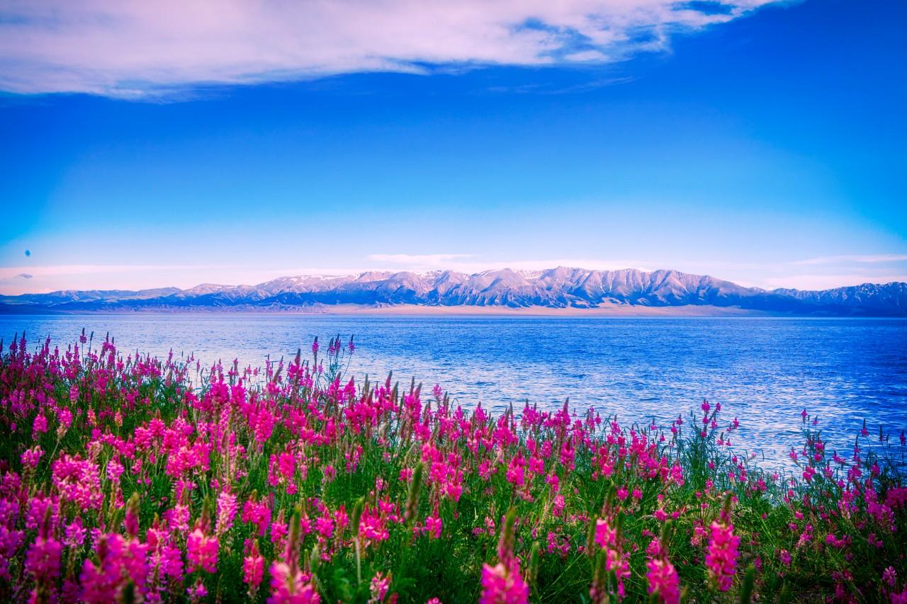 从温泉县坐大巴来到赛湖,赛里木湖很大,最佳的游玩是在湖边住上一晚,围绕湖游一圈,但由于时间关系加强上据说在施工,我们只用了半天时间去了西海草原等三个精华景点。稍微有点遗憾的是,天气有点阴,否则在蓝天的辉映下,湖水会更蓝,倒影更清晰。我们把大多时间放在了山下的野花花海,如此大规模,让我们几位女同志躺着、坐着、站着,摆了多种姿势拍照!70元的门票绝对值,能去的朋友抓紧吧,不知游客过多后,那些绿草和野花是否还会如此茂密?