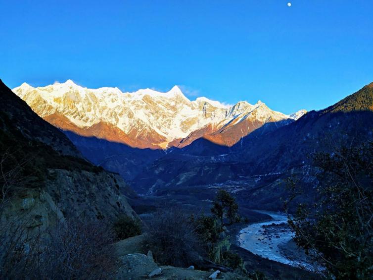 来的第一天阴天,第二天下雨下雪,第三天第四天全部是大晴天,不但看到了南迦巴瓦峰的全面貌,还有幸等到了它的日落金山,最后一天走的时候也是风和日丽跟它说再见,果然,尘世间所有美好的事物都值得等待