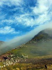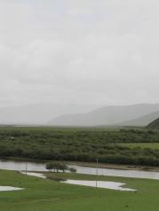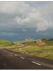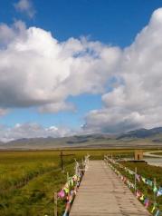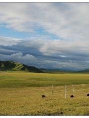 若尔盖大草原地处四川、甘肃、青海三省结合部,由若尔盖、阿坝、红原、壤塘四县组成,是中国五大草原之一的川西北大草原,水草丰茂,一派宽广辽阔、景色迷人的草原风光。 草原地势平坦,一望无际,人烟稀少,红军二万五千里长征曾多次通过这里,留下了许多可歌可泣的动人故事和革命遗址。据史料记载,约有一万多红军将士长眠于草地,红军走进草地几乎濒临绝境。可我们走进草原的时候却是心花怒放,老天终于在折磨了我们一路的细雨之后也觉得不好意思吧,在我们继续前进的路上竟然在天色将暗的时候天空放晴了,竟然让我们这些游子见识了一回什么是真正的草原之美。那灿烂的阳光照耀在山峰上和草地上,羊群上,天哪,那简直是镀金上去的,那层光线