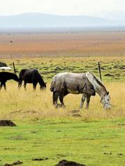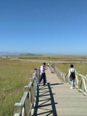 若尔盖草原行记 本来四家人自驾,游黄龙后有一家人分道,苦劝也没能留住。惋惜声中三家人执着前行,下午3时许出发,40分钟到川主寺,小谈谈一家落在后,在路边稍事休息等候,他们赶到后又因吃饭、修车,让我们在前慢行。经213国道,沿一条小河前行,道路直而平坦,稍踏油门即可达80,因有一定海拔差距,临近尕力台时有一大段上坡路,尕力台前有三岔路口,此时手机信号微弱,之前导航显示向左走301省道,问当地藏民都说要靠右继续前行,右行10余公里,感觉不对劲折返左行,前面不远有藏民放牧,索性玩会儿骑马,6个人每人骑了一圈,合影留恋。 小谈谈一家还未到,继续慢行,若尔盖大草原全部呈现在眼前,整个傍晚迎着日头在一望无