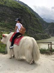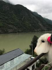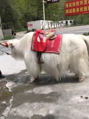 路边下车看到的叠溪海子地震遗址,很震撼。 免费参观。 有人让骑打扮一新的白牦牛拍照,算是生财之道。 路边的东西质量较差,不建议购买。