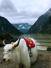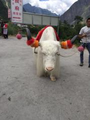 去九寨沟时去的叠溪海子,1933年,地震形成的堰塞湖。有人人弄了白化病的牦牛,在这边拉客照相,还不错