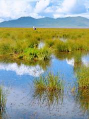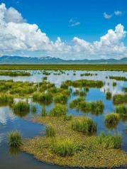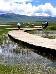 若尔盖草原是青藏高原东部边缘一块特殊的区域, 海拔高度在3300米至3600米之间,也被称为松潘高原,相对于我国中东部的低海拔地区,它是高原,而相对于它东边的岷山、南面的邛崃山、西边的果洛山、阿尼玛卿山、西倾山以及北面的西秦岭等山岭,它却处在群山环抱之中,是高原上的一个盆地。