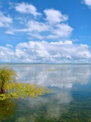 花湖天气变化太快,刚进去的时候晴空万里,突然一阵暴雨,衣服湿透。40分钟后雨停了,大太阳出来,暴晒下,衣服又很快干了,神奇的经历。雨后的花湖更加漂亮,美丽。花湖很大,要慢慢的逛,不同角度看到的风景不一样。白云倒映在湖水中,像洁白的棉花