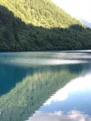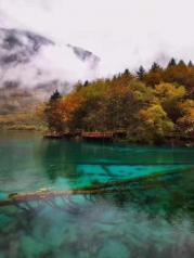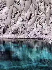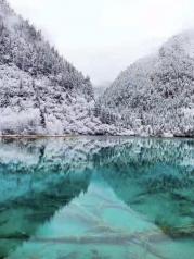 冬天的九寨沟银装素裹,大地都披上了一件银色的盛装,水还是那样的五彩斑斓,让我沉醉其中不可自拔,水面那些枯枝落叶的点缀给予了九寨沟不一样的韵味,水里倒映着水面的美景,似乎是一面镜子让美景更增添一份特别。