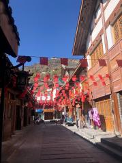 松潘古城里面别有洞天,非常繁华,还有清真寺街,里面有个牦牛肉集市广场,我们在里面买了很多当地肉质鲜美的牦牛肉带回成都,古城里面住的客栈也很多,我们住的藏式风格的雄象客栈很不错。