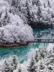 冬季的九寨沟,在冰天雪地的映衬之下,水的灵气更加显现。湛蓝的湖水枯木,琼楼玉阁,山林银装冰花,偶尔相遇小动物脚迹,这一切大自然的本相,雕刻出人间天堂醉人之美。