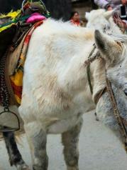 长坪沟天好的时候在木骡子可以看到四姑娘山,门票70,观览车20,一直开到喇嘛寺,从这里走一个多小时栈道可到枯树滩,然后再走一个小时能到下海子。我们从这里租马,一直到木骡子,感受了一把茶马古道的感觉,看到广阔草原和高山湖泊。