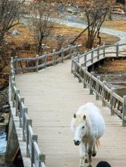 来到格尔底寺,我们直接就去了峡谷。景色很漂亮,非常值得一去。因为天气不好,早上刚刚下过雨,所以地很湿滑。我们在中途租马骑上去,上面是一片草原,景色非常的美丽。峡谷票和格尔底寺是通票,三十元一张。不收停车费。