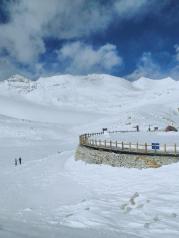 达古冰川勇于挑战,值得一去。最近的遥远,最原始的壮观。带着喜欢的人,非常不错,取票方便。景区有短驳车直接把你送到索道入口。,而且在这段路上有几点景点都会停下让你拍照。到索道后直接上索道到达顶峰。这时间去上面雪很大风也很大。但是有太阳风景就非常漂亮