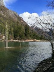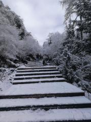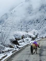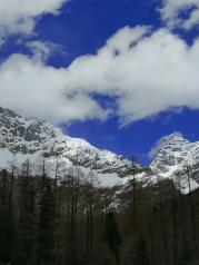 我们是四月初去的四姑娘山,可能是我们的运气好 ,住在长坪沟附近酒店,当天下午到的,第二天早上起来一看惊讶了,白茫茫一片,夜里下了场大雪,看到了少有的景色,因为温度较高,中午去的就没看到那样的景色,一个字,美!