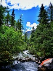 被四姑娘山的神秘诱惑了很久才得以终于成行。微雨中进山,凉爽清新。进山后一直往四姑娘山跟前游走,虽然始终有微云缭绕,但是高山仰止的神秘雪山还是让人很欣喜