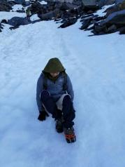 这次去攀爬了四姑娘山大峰,海拔在5035,大本营的海拔在4300左右,可以徒步或者骑马到达。四姑娘山大二三峰理论上都属于初级雪山,但是难度依次增高,并不像一些帖子里说的老奶奶叼着牙签就能上去。登山一定得是基于理性的,如果没有雪套冰爪等装备和充足的体能、高原耐受力,很容易对自身造成伤害。 我是清明节去的,当时最深的积雪已经过了膝盖,而且自己对登山不是很了解,第一天高原徒步就消耗了大量体能,到达大本营已经很累了,晚上住的帐篷会很冷,那晚还下了暴风雪,一直肆虐着帐篷,那时的确感到了自然的可怕和人类的渺小。第二天的登顶过程也是非常艰辛,因为海拔高,会出现一些犯困,肌肉酸痛等症状,即使完全