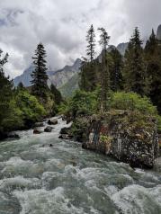 四姑娘山这次旅行是跟团出游,一天内从成都直奔海拔将近4000公尺的四姑娘山,本来程度还是阴雨绵绵,到了四姑娘山晴空万里,青山绿水还有清新的空气,我们还买了当地特产的李子和苹果都非常的香甜而且价格实惠,沿途乘坐景区观光车,所以在体力耗费上不会很累,有一段是可以漂流,看了别人去尝试漂流还挺有趣的