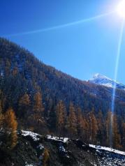 我们一行四人游玩了四姑娘山双桥沟,时值天气晴朗,雪后初晴,景色优美,雪山在阳光下,光灿夺目。蓝天、白云、青山、绿水。沁人心脾!