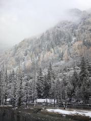 双桥沟位置比较偏僻,离四姑娘山镇中心有些远,我们十月六日进景区的,人不多,下午1点进,一路开到终点红杉林,车程35公里要开45分钟左右,天气有些阴雨,红杉林海拔有些高一下车就开始下小冰雹好冷好冷,无论镇上天气如下,进景区一定要多穿衣羽绒服都不过分,否则你冻的都不想玩了。由于山上太冷加阴天,对景色印象有些打折扣哈,从红杉林下来沿路会停靠大概4-5个景点,说实话天气晴的话景色会更美,我们是冷的加之轻微高反到最后的人参果坪已经懒得继续玩了,那时候天也黑了,个人认为这个景区要大半天的。总之天气好绝对推荐不坑,另多穿衣服bu不要轻敌。