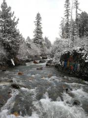 四姑娘山收了门票的地方,好处就是方便,班车直达目的地。班车是先到终点,然后往回去一站站停,要是想慢慢逛或者漂流,就等下班车,不要急。可惜我们去天气太冷风大,没心情慢慢逛,照片也不好看。一定要好太阳的天气去。