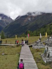 四姑娘山——喜欢双桥沟,景色很美,景区内交通方便,即便是国庆节乘车也不用排太久的队。漂流80一人,小贵,一会儿就到头了,说有4.5公里肯定没有,旁边栈道才2公里,不过孩子喜欢,水道很平,没有危险性。长平沟天气不佳,四姑娘山一直被云挡住,回程时山顶云突然散了,看到了四姑娘真容,很圣洁美丽。我们去程走路,走到了下干孩子,栈道有六七公里,有点远,枯树滩以前栈道上上下下,后面很平缓。回程走不动了骑马到门口,国庆节什么都贵,要200一匹马。回程发现大门口到枯树滩那段栈道都在树林里,看不到什么,反而是骑马景色很好,只是骑马马道都是烂泥,中间基本无法下马玩儿,而且马主人还想多拉活,也不愿意让你下来玩儿。如果