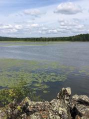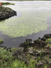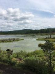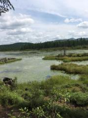 搭乘景区电瓶车前往游览阿尔山杜鹃湖,湖的铭称以湖区周边丛生的杜鹃花得名,虽然不是花期但景色不错,游人如织,沿着落叶松遮荫的栈道,一直走了很久,终于来到湖边,湖面开阔,岸边浮萍漂浮,远处远山如黛,湖面微波涟漪,相信游览过阿尔山的游客,都会认为杜鹃湖是景区内最美的景点