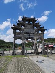 西递镇村前的牌楼西递始建于宋朝的元祐(宋哲宗)年间,由于河水向西流经这个村庄,原来称为“西川”。因古有递送邮件的驿站,故而得名“西递”。离宏村大概20分钟车程,村子没宏村景色秀丽,但也古香古色。