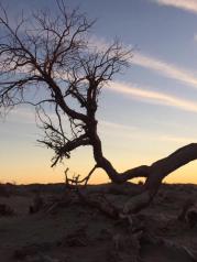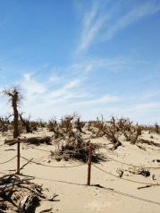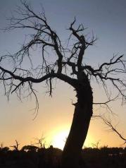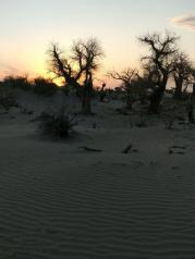额济纳胡杨林,三千年的胡杨,一千年的不死,一千年的不倒,还有一千年的不朽!位于额济纳旗达来呼布镇西南约28公里处的怪树林,百年前曾是一片原始森林,由于自然因素,大片枯死的胡杨东倒西歪而神态各异。没有比较就没有伤害,怪树林没有新疆塔里木胡杨林倒地的胡杨原始粗壮,也没有我想象中那么沧桑凄凉,可能宣传的比较好…
