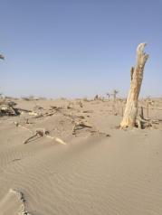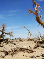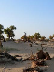 额济纳胡扬可以穿越地层一百多米,“生而不死一千年,死而不倒一千年,倒而不朽一千年”。由于黑河干枯,2000亩枯死的胡杨“陈尸”遍野,被当地称为胡杨的坟墓。这里的情景告诉我们,要保护环境爱惜环境,不要让最后一滴水成为我们的眼泪