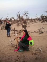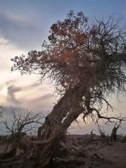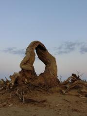 从酒泉一早坐大巴车下午到的额旗黑水城,跟同住一酒店的两人包车去的,一共两百(都是这个价),三点多到了排很长队进去景区大巴,先到的弱水旁边的胡杨林景区,太大了转不过来就没有过桥又返回(后来听说桥对面的胡杨林最漂亮)说赶在夕阳下山时在怪树林拍的景色最美,因排队太久,到了太阳已落山,不过不影响它的美,奇形怪状的胡杨倒而不腐一千年,很美,有的叫“生离死别”有的叫“生死相依”还有很多很多……