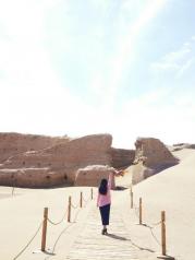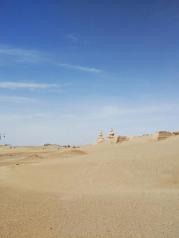 黑水城就是一个遗址,没啥好看的。路很远,工作人员说进入黑城只能步行,不能开车。但是当天气温太高了,四十多度……没办法,只能走进去。除了简单的石碑介绍和几个沙丘没别的东西