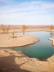 居延海——沙漠与海,一片沙漠绿洲啊!居延是匈奴语,《水经注》中将其译为弱水流沙,在汉代时曾称其为居延泽,魏晋时称之为西海,唐代起称之为居延海,现称天鹅湖。就像爱情与火焰,这里的震撼绝对要来体会。