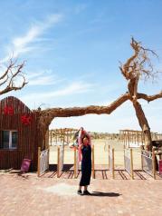内蒙古额济纳旗~胡杨林。酒店三晚564元不含餐,入住当天已标价368元/1晚,并已客满! 早晨是从金塔县出发的,四百公里左右,高德地图显示全程将需用时十小时多!实际用时大约不到五小时。原因可能是:由于全程公路均非高速,但路况很好,导航只能指导合法时速,但实际驾驶时速,没有监测话都会超过100公里!下午到达酒店在2点左右。休息到五点决定去怪树林。 做攻略时,怪树林景点是免费的,但导航导到景区时,一条新路引向一个新的收费口,门票120元,把黑城也包括了进去!去年黑城才10元!没办法准备买票,但告之今天已经来不及游览全部景点了因为去黑城还要十多公里!有点气愤但根本没有一点点办法! 不甘心!因为一路上