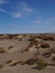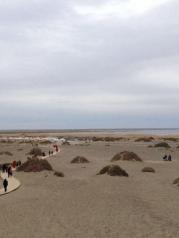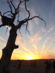居延海,看日出的景点,景点外的木头栏杆都塞满枯草不留一点缝隙,想在外面看日出只能进行跳跃运动,想拍照那是没可能,我看到有游客爬到车顶上去拍照,扶额…还得买票进去。 居延海因为地势开阔日出时间比额济纳胡杨林稍早一点,国庆是7点多,必须提前一小时到,节假日排队买票要等很久很久! 进入景区会发现居延海比想像得要大得多!于是大队人群开始了少年啊向着太阳奔跑的活动,跑过一大片帐篷,往前又是一大片帐篷,地势稍高的点都给这些大晚上就候着的人占满了,而湖还在遥远的地方,继续跑过好多帐篷,终于离湖近了,等日出看完,你会发现东南西北都分不清,因为你刚才只顾向着太阳奔跑了,路全没看。 一般导游会让游客8:30或9: