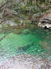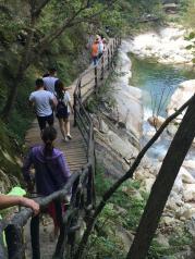 霍山大峡谷漂流,刚上小艇就下大雨了,不过第一个落差就已经完全湿透,不怕下雨了。大约一个小时左右,沿途有工作人员帮忙指点,还是很有意思的,安全刺激,值得一玩。