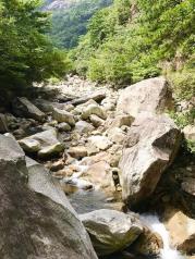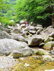 白马大峡谷景区跟旅游团去的天堂寨,第一天,白马大峡谷,先步行上山,再从峡谷边的小路走下来,泉水清凉,很舒服,我们在玩水