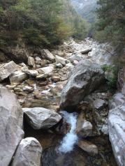 白马大峡谷也在天堂寨景区内,可坐景区巴士到白马大峡谷上站,然后往下走。里面还有一条白马栈道,修在悬崖峭壁上,供游客攀登,锻炼体力。峡谷内目力所及,尽是洪荒年代留下的遍地乱石和在乱石间奔流的清清溪水以及峡谷两边恣意生长的青翠树木。行程中不时会点缀一个凉亭,供人小坐一会,