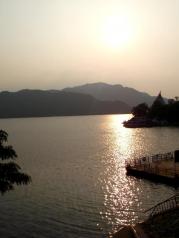菱湖风景区东园门口有一个大型剧场以及黄梅戏博物馆。走进公园,只见冬季的菱湖,水面迷蒙,少了夏季满湖艳荷的明丽,变了风格,有一种朦胧美。