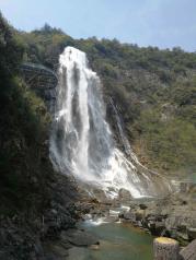 大别山彩虹瀑布《彩虹飞驾瀑布扬》猴崖悬瀑三十丈,彩虹飞驾雷轰响。猴河峡谷龙虎景,奇石长廊百花香。郑成功,司马光,主席百将老故乡。八万红军发源地,刘邓大军逐鹿场