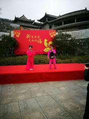 黄梅戏会馆舞台不是很大,为两层楼,中间为大厅,两边和后面均设包厢,一式的八仙桌,一杯清茶,一碟瓜果,给人以不一般的感受。锣鼓一响,黄梅戏优美的旋律响起,演员载歌载舞,情趣、魅力、韵味尽在其中,颇让人有妙不可言的感觉。