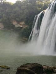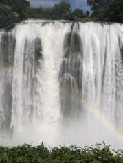 这是第二次去黃果树瀑布。第一次冬天,且阴雨,这次放晴,在大瀑布看到彩虹。自己去,没跟团,所以可以看到不同时间阳光折射的彩虹。因为雨后几天到,所以水大。比预期好的是所住民宿附近未开发的瀑布,没游客,可以静静的和朋友欣赏。
