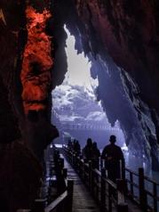 我们是顺着一进龙宫二进龙宫的顺序然后到观音殿而出的顺序游览的,路上遇到很多从观音殿入口的游客,他们觉得没意思,我们告诉他们越往后走(也就是我们来的方向)越有意思,绝对有惊喜。惊喜在于什么呢,首先有瀑布,有溶洞,有幽香,有索道。特别是坐着景区的游船穿梭在龙宫里面的时候,那种感觉就像是真的一不小心闯进去龙王的大殿。不论之前学过多少有关卡斯特地貌的知识,了解它怎么形成有什么特点,徜徉其中的时候这一切都没有去梳理的必要,只想 感叹大自然的神奇,感慨祖国真的是辽源广阔,有太多无与伦比的自然奇观。